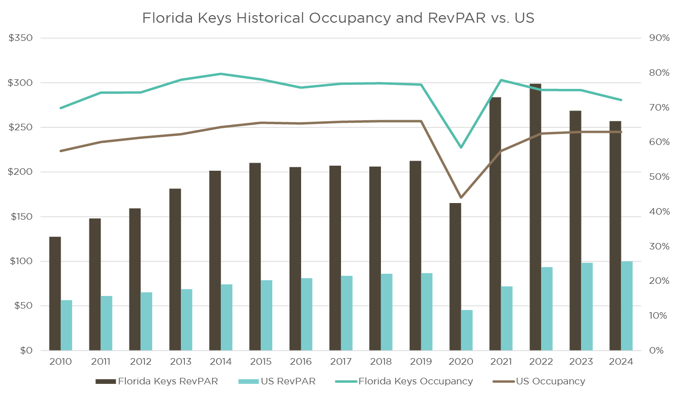 There is a new project on Stock Island that has been approved for 148 keys, but is not yet under development. Except for this potential development, there is very limited supply coming on-line in the Keys market. Lack of supply, increased airline capacity, return of the international customer, and the stabilization of domestic leisure travel in 2025 will bolster the Florida Keys as one of the top lodging markets in the country.